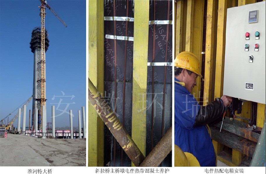 此次中交第三公路工程局有限公司徐州至明光高速公路土建工程橋墩防凍選擇我司中溫自限溫電伴熱帶用于防止混凝土凍結橋墩,該型號最高表面溫度110攝氏度,將幾乎100%的電能轉換為熱能,通過電熱帶平行直鋪在固定橋墩混凝土的外部,加速其硬化。外保溫用橡塑板予以保溫,最后達到干燥整個建筑結構,并且在建筑過程中提供基本的供熱。