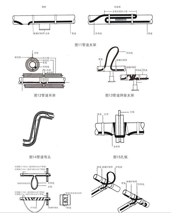 電熱帶安裝時應(yīng)注意,保證電熱帶芯帶最大接觸面積緊貼附件。切勿扭折,保證熱傳遞正常。以上安裝可以通過鋁箔膠帶增大受熱面積,確保伴熱效果。以下為附件安裝示意圖: