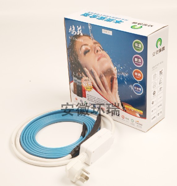 安徽環(huán)瑞為了方便用戶安裝,更加提供一種無需自行接線的,可插式帶漏電保護(hù)器的自控溫發(fā)熱電纜,滿足8米以內(nèi)的管道伴熱需求,具體產(chǎn)品如下圖: