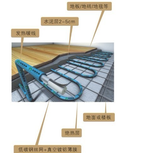 發(fā)熱電纜電地暖系統(tǒng)由發(fā)熱電纜和溫控器兩部分組成,發(fā)熱電纜鋪設于地面中,溫控器安裝于墻面上。當室內環(huán)境溫度或地面溫度低于溫控器設定的溫度時,溫控器接通電源,發(fā)熱電纜通電后開始發(fā)熱升溫,發(fā)出的熱量被覆蓋著的水泥層吸收,然后均勻地加熱室內空氣,還有一部分熱量以遠紅外輻射的方式直接釋放到室內。該種方式的采暖系統(tǒng)把整個地面作為散熱器,室內溫度上層低而下層高,有溫足而頂涼的感受,使您感到舒適而自然。