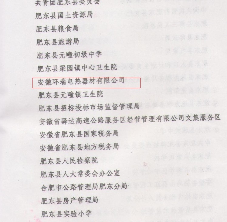 安徽環(huán)瑞電熱器材有限公司有幸成為其中的一員,我們將再接再厲,發(fā)揚(yáng)成績,為推進(jìn)社會主義物資文明,政治文明,精神文明和生態(tài)文明建設(shè),構(gòu)建和諧社會的偉大實踐中更好的發(fā)揮示范帶頭作用。做出新的更大的貢獻(xiàn)。提供思想保障,精神動力和智力支持。