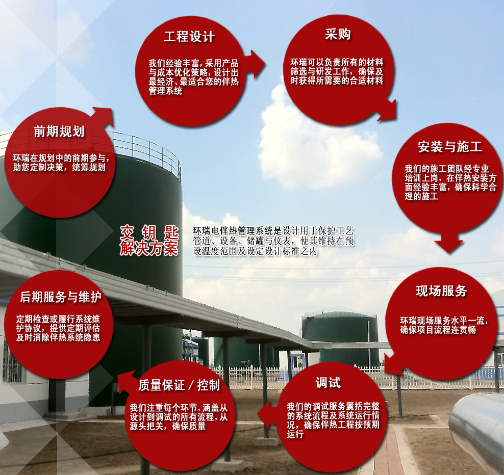 環(huán)瑞電伴熱工程設計、施工,采用產品與成本優(yōu)化策略,設計出最經濟、最適合您的伴熱管理系統(tǒng),施工團隊經專業(yè)培訓上崗,專業(yè)高效,確保科學合理的施