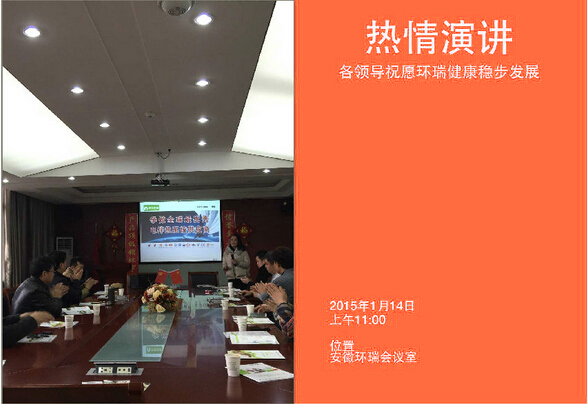 2015年1月14日新年伊始,環瑞迎來了新疆烏蘇市相關領導蒞臨考察,烏蘇市相關領導在環瑞董事長計成志陪同下參觀了環瑞電伴熱帶、發熱地席和環瑞現代化展廳,并在環瑞會議時聽取環瑞員工對環瑞未來發展的相關介紹。