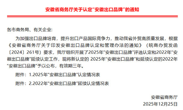 獲得“安徽出口品牌”認定的企業代表了安徽省出口企業的優異水平。這一稱號不僅是對企業過去成績的認可,更是對其未來發展的期待與支持。